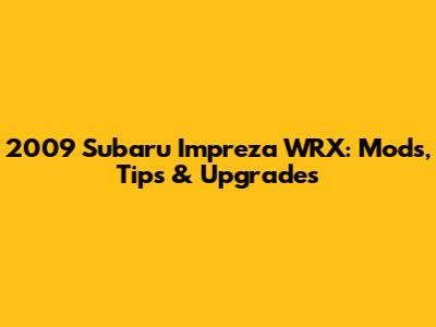 2009 Subaru Impreza WRX: Mods, Tips & Upgrades