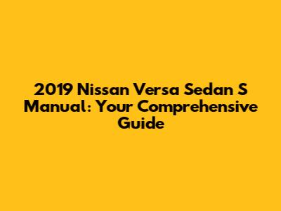 2019 Nissan Versa Sedan S Manual: Your Detailed Guide
