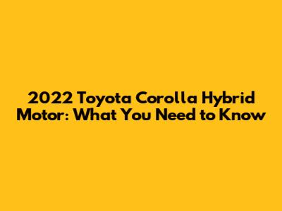 2022 Toyota Corolla Hybrid Motor: What You Need To Know