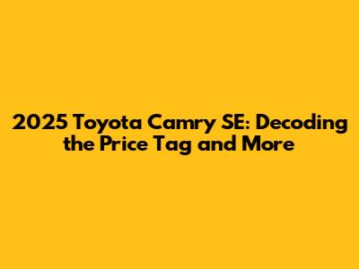 Hey everyone! Are you guys as excited as I am about the upcoming 2025 Toyota Camry SE? This car is a classic, and with the new model year on the horizon, it's natural to start wondering about the price. So, let's dive into the burning question: How much is a 2025 Toyota Camry SE going to cost? We'll break down the factors that influence the price, explore the features you can expect, and even give you some insights to help you get the best deal. Buckle up; it's going to be a fun ride!