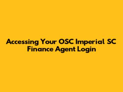 Step-by-Step Guide to Your OSC Imperial SC Finance Agent Login