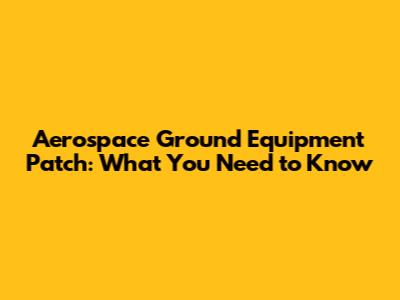 Aerospace Ground Equipment Patch: What You Need To Know