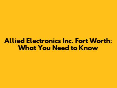 Allied Electronics Inc. Fort Worth: What You Need To Know