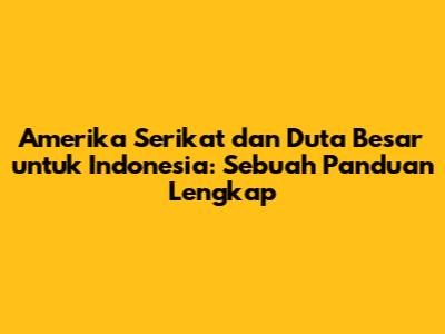 Amerika Serikat Dan Duta Besar Untuk Indonesia: Sebuah Panduan Lengkap