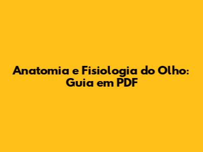 Anatomia E Fisiologia Do Olho: Guia Em PDF