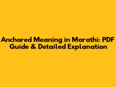 Anchored Meaning In Marathi: PDF Guide & Explanation