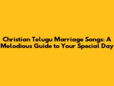 So there you have it, guys! Everything you need to know about Christian Telugu marriage songs to make your wedding day absolutely perfect. Happy planning, and may your wedding be filled with love, joy, and beautiful music!