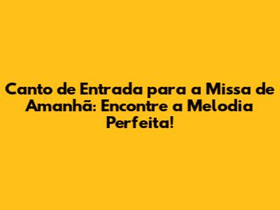 Canto De Entrada Missa Amanhã: Escolha A Música Perfeita!