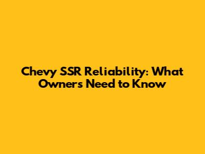 Chevy SSR Reliability: What Owners Need To Know