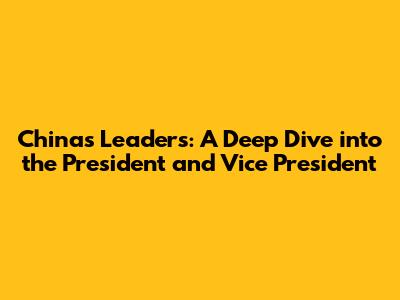 Hey everyone, let's talk about China's leadership! Ever wondered who's calling the shots in the world's most populous nation? Well, it all boils down to the President and the Vice President. These two figures play a crucial role in shaping China's domestic and international policies. So, grab a coffee, and let's dive deep into understanding their roles, responsibilities, and how they contribute to the dynamic landscape of China. I'll break it all down for you, making it super easy to understand.