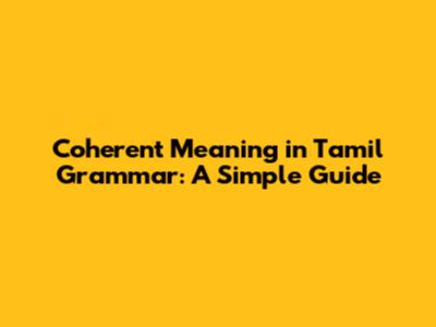 Coherent Meaning In Tamil Grammar: A Simple Guide