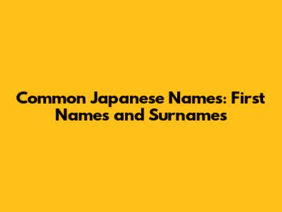 Common Japanese Names: First Names And Surnames