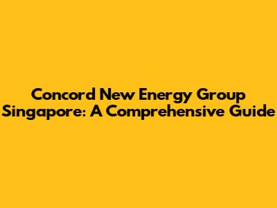 Concord New Energy Group In Singapore: An Overview