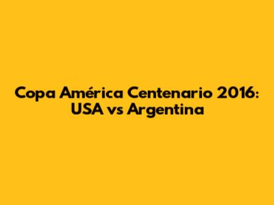 Copa América Centenario 2016: USA Vs Argentina