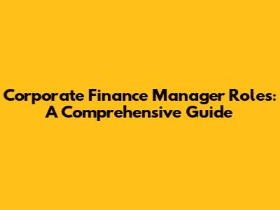 Corporate Finance Manager Roles: A Comprehensive Guide