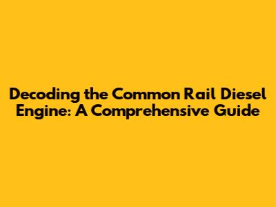 Decoding The Common Rail Diesel Engine: A Comprehensive Guide