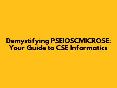 Demystifying PSEIOSCMICROSE: Your Guide To CSE Informatics