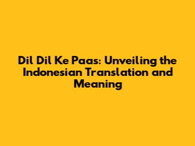Dil Dil Ke Paas: Indonesian Translation & Meaning