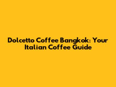 Dolcetto Coffee Bangkok: Your Italian Coffee Guide