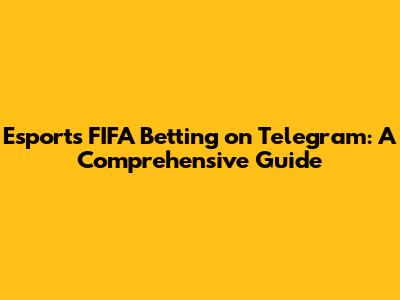 Esports FIFA Betting On Telegram: A Comprehensive Guide
