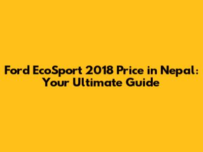 Ford EcoSport 2018 Price In Nepal: A Comprehensive Guide