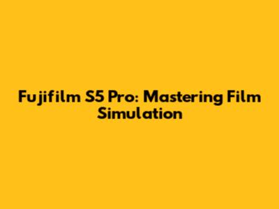 Optimizing Your Fujifilm S5 Pro for Film Simulation
