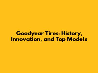 Goodyear Tires: History, Innovation, And Top Models