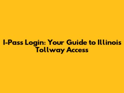 I-Pass Login: Your Guide To Illinois Tollway Access