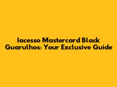 Hey guys! Let's dive deep into the world of Iacesso Mastercard Black in Guarulhos. If you're looking for premium perks, exclusive benefits, and a touch of luxury in your financial life, then you're in the right place. This guide is designed to give you all the juicy details about the Iacesso Mastercard Black, specifically tailored for those living in or frequently visiting Guarulhos. We’re talking about maximizing your travel experiences, enjoying top-notch concierge services, and getting the most out of your everyday spending. So, buckle up and get ready to explore the ins and outs of this elite credit card!
