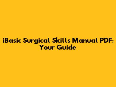 Are you looking to enhance your surgical skills? The iBasic Surgical Skills Manual PDF is an invaluable resource for medical professionals and students alike. This comprehensive guide covers essential surgical techniques, providing a step-by-step approach to mastering fundamental skills. Let's dive into what makes this manual a must-have in your surgical education and practice.