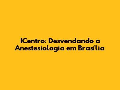 ICENTRO: Anestesiologia Em Brasília Descomplicada