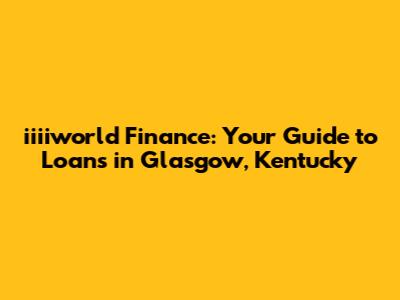 Hey guys! Are you looking for financial solutions in Glasgow, Kentucky? You've come to the right place! In this article, we're diving deep into iiiiworld Finance and how it can help you with your financial needs. We'll explore everything from the types of loans they offer to how you can get started. So, buckle up and let's get started!