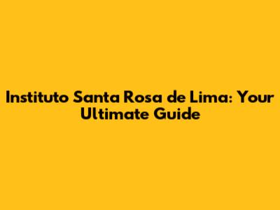 Instituto Santa Rosa De Lima: A Comprehensive Guide