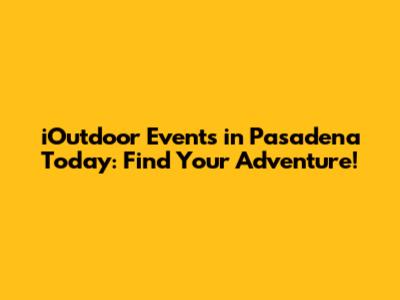 IOutdoor Events In Pasadena Today: Find Your Adventure!