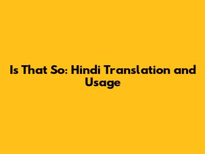 Is That So: Hindi Translation And Usage