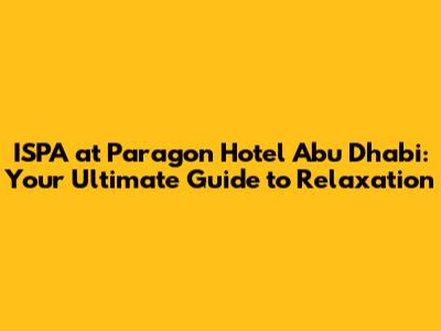 Hey there, spa enthusiasts! If you're looking for a slice of heaven right here in Abu Dhabi, you've stumbled upon the right place. We're diving deep into the world of ISPA at the Paragon Hotel Abu Dhabi, a sanctuary designed to whisk you away from the everyday hustle and bustle. Get ready to explore everything from the treatments they offer to the vibe of the place. Let's embark on this journey together, shall we?