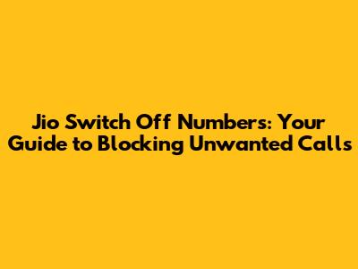 Jio Switch Off Numbers: Your Guide To Blocking Unwanted Calls