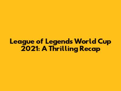 Hey guys! Let's dive into a super exciting recap of the League of Legends World Cup 2021. This tournament was packed with insane plays, unexpected upsets, and moments that had us all on the edge of our seats. If you're a LoL fan, you already know how epic Worlds can be, but let’s break down why the 2021 edition was truly special. Get ready for a deep dive into the teams, the meta, and the unforgettable matches that defined this championship!