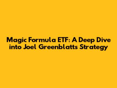 Magic Formula ETF: A Deep Dive Into Joel Greenblatt's Strategy