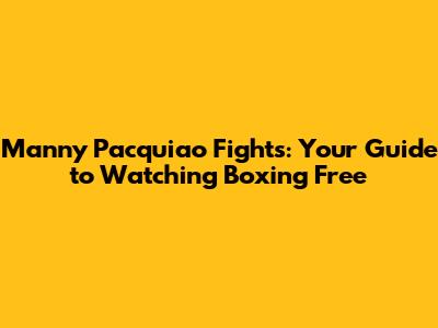 Manny Pacquiao Fights: Where To Watch Boxing Free