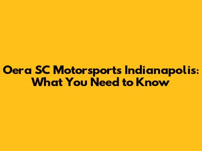 Oera SC Motorsports Indianapolis: What You Need To Know