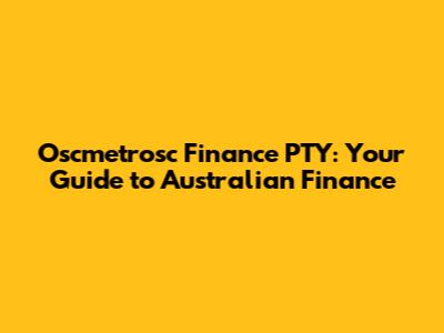 Oscmetrosc Finance PTY: Your Guide To Australian Finance