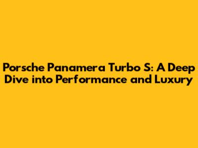 Porsche Panamera Turbo S: Power, Luxury, And Style
