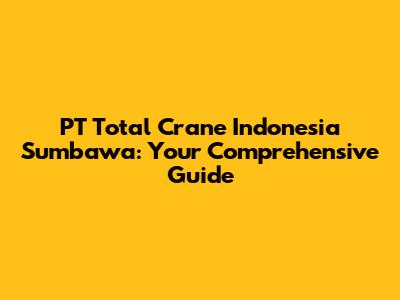 PT Total Crane Indonesia Sumbawa: Your Comprehensive Guide