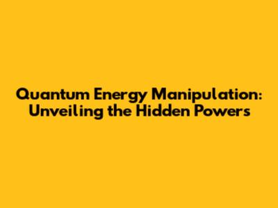 Quantum Energy Manipulation: Unveiling The Hidden Powers