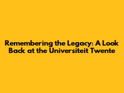 Remembering The Legacy: A Look Back At The Universiteit Twente