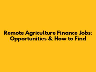What are Remote Agriculture Finance Jobs?