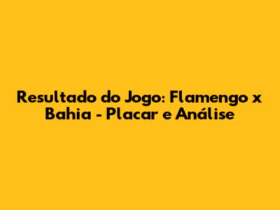 Resultado Do Jogo: Flamengo X Bahia - Placar E Análise