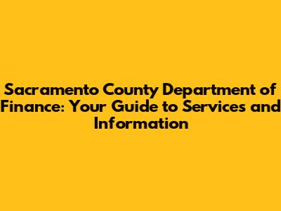 Sacramento County Dept Of Finance: Services & Info