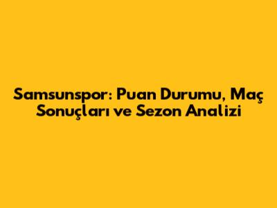 Samsunspor: Güncel Puan Durumu, Maç Sonuçları Ve Analizler